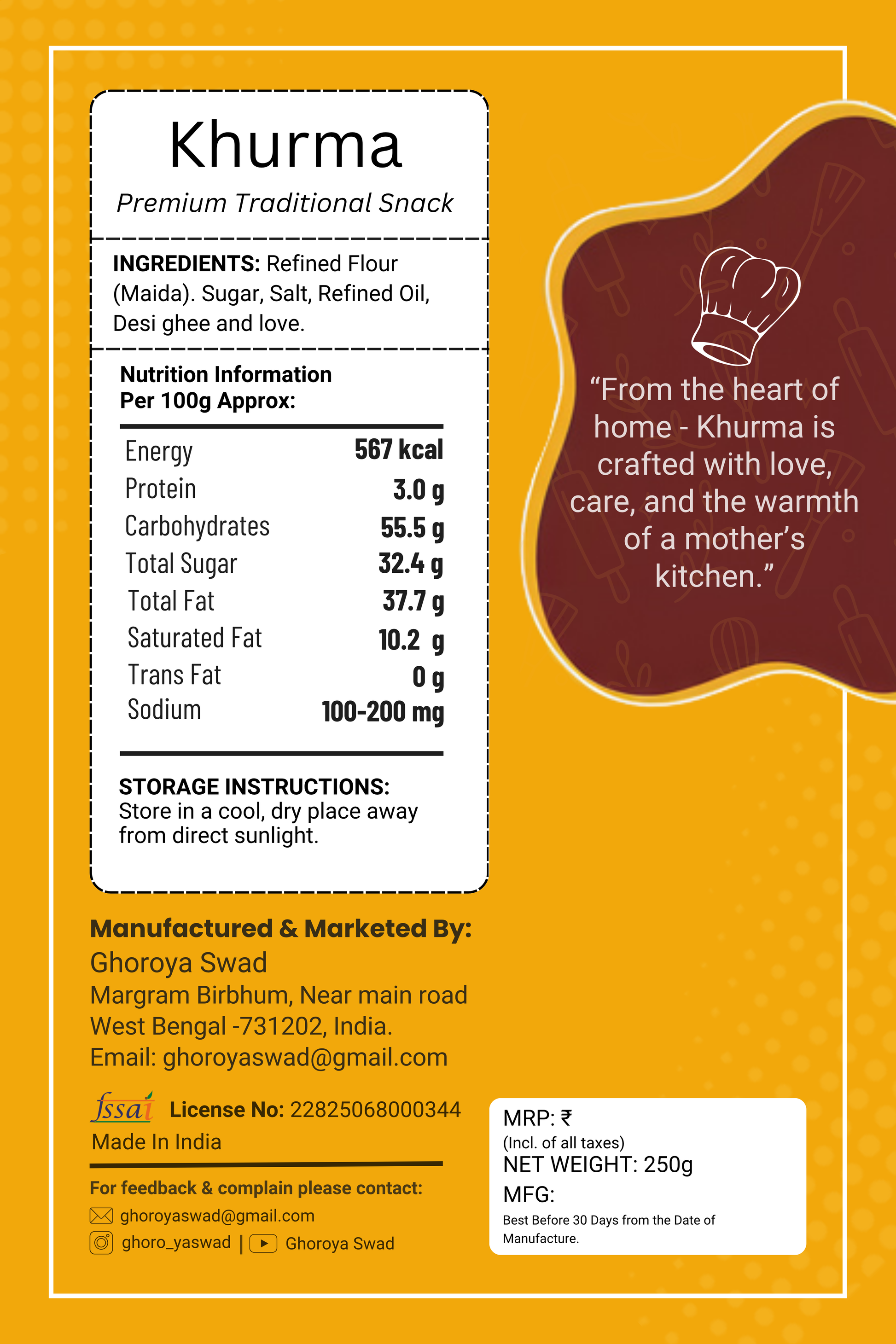 Our Khurma is homemade with care, using simple, pure ingredients β flour, ghee, and sugar β just like grandma used to make. Itβs a favorite during festivals, family gatherings, or tea-time.